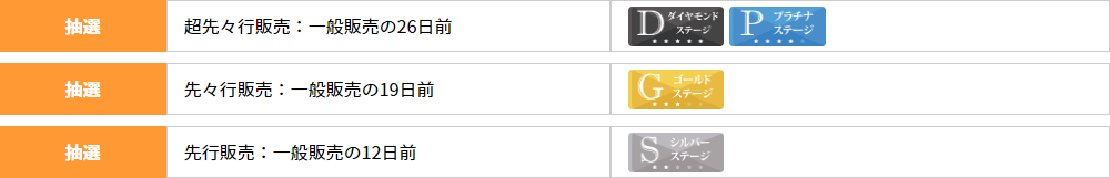 タカチケットでは、ステージランクに合わせて抽選販売をおこなっております。