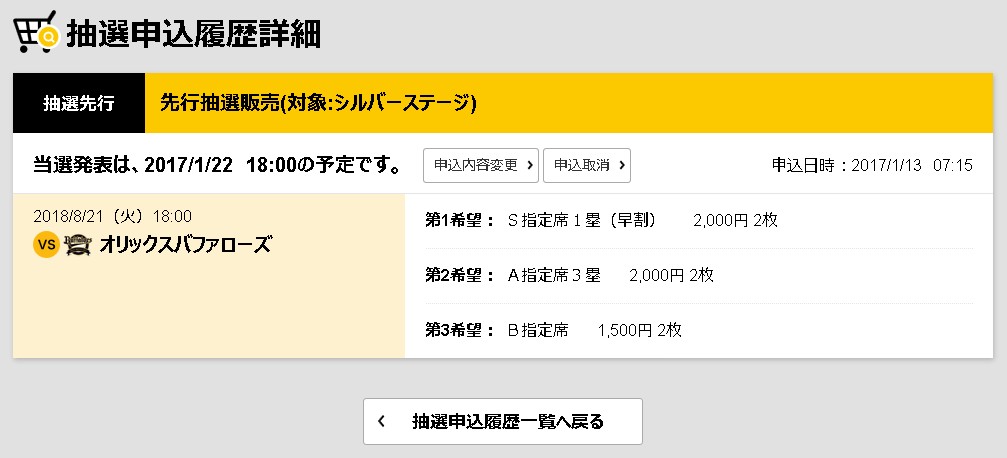 抽選申込履歴・申込内容の変更
